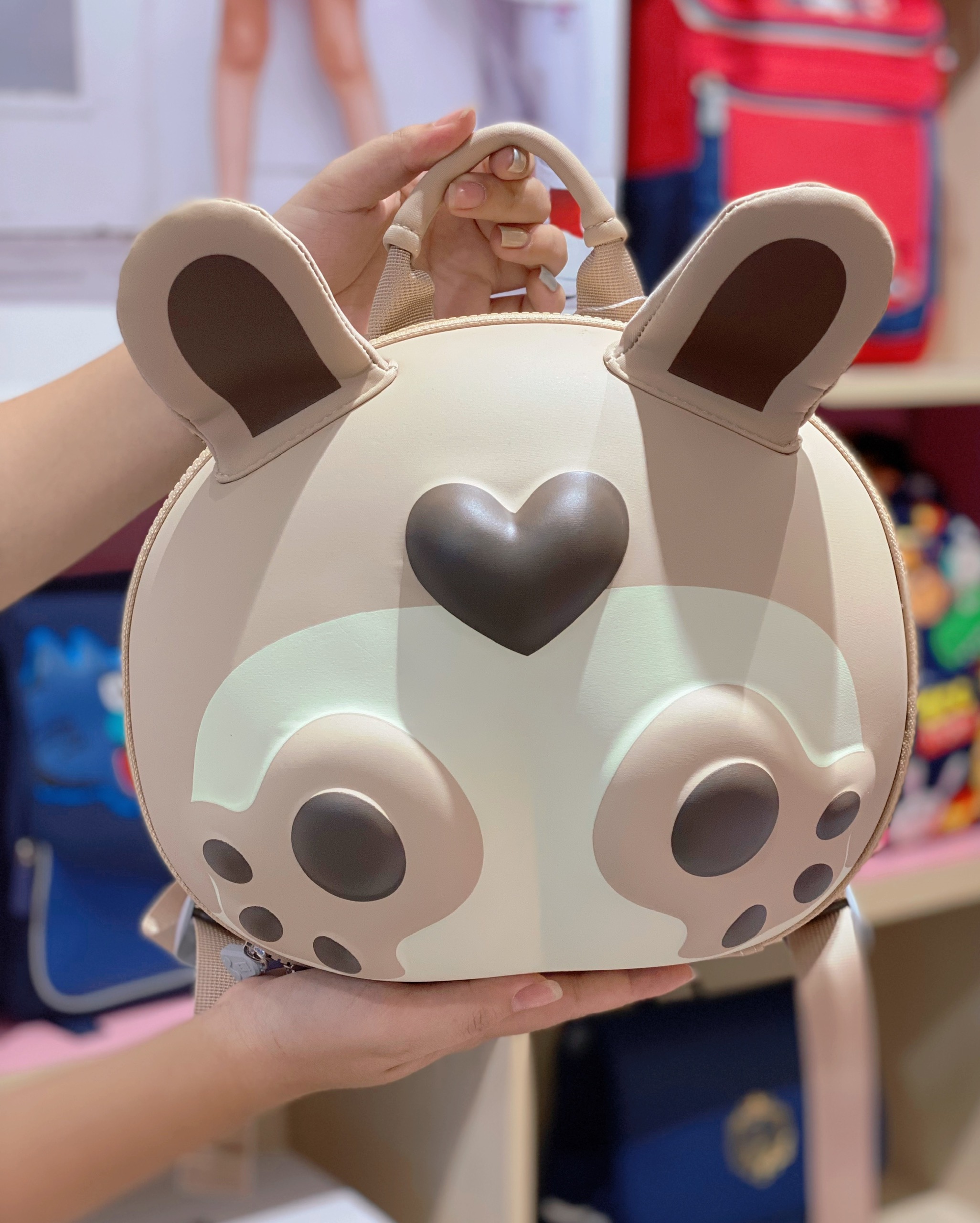 - Balo có cả quai đeo lẫn quai xách với thiết kế chắc chắn, thay vì chỉ đeo, bé có thể xách đến trường hay đi chơi. Mẹ cũng có thể treo ba lô của bé lên để bảo quản khi không sử dụng.